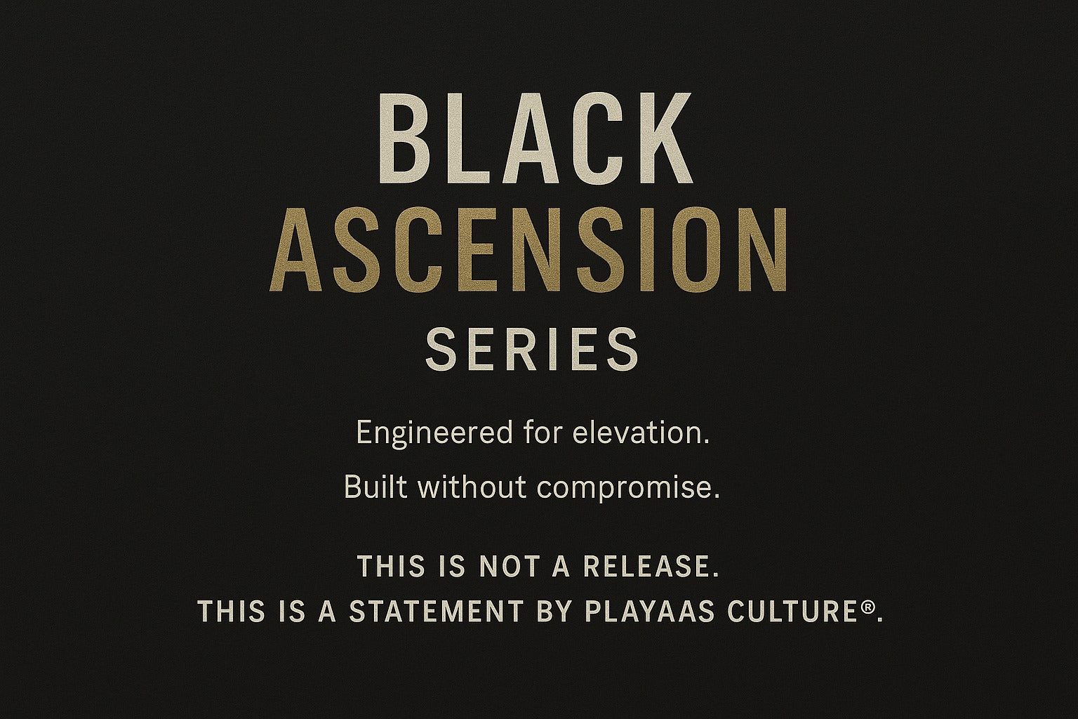 Luxury black sneaker tongue label with off-white woven text reading PLAYAAS CULTURE®, BLACK ASCENSION, and ISSUE 01 in a minimalist high-fashion design.