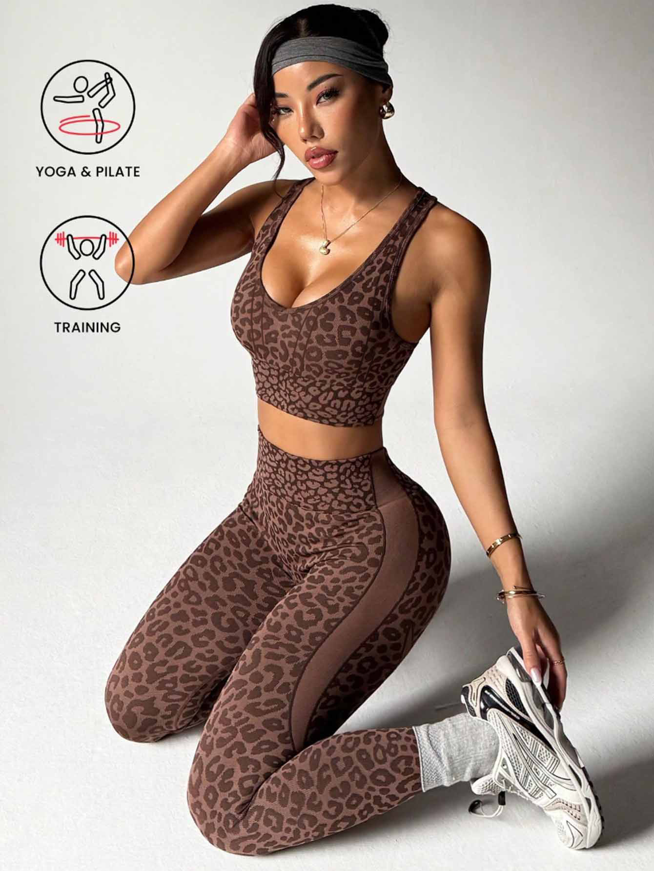 • Stylish leopard print activewear design