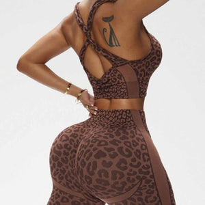 Leopard-Print Seamless Yoga Bra & Peach-Butt Leggings Set