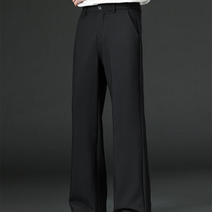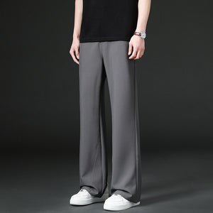 Mens Solid-Color Casual Straight-Leg Loose Wide-Leg Pants