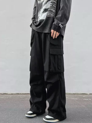 Mid-rise Wide-leg Parachute Pants Casual Slimming Workwear Trousers