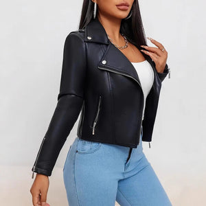 The structured design creates a powerful, flattering shape while the premium leather finish adds a polished high-end look. Whether styled for casual streetwear or elevated evening outfits, this jacket instantly transforms any look into a fashion-forward statement.
