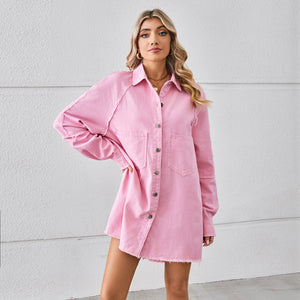 Bring effortless edge to your wardrobe with the Washed Raw Edge Denim Dress Stitching Long-Sleeved Cardigan, a bold fusion of classic denim and modern streetwear style.