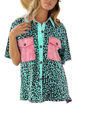 Womens Leopard-print Patchwork With Pockets And Print