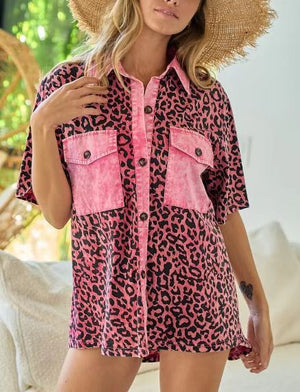 - Womens Leopard-print Patchwork With Pockets And Print