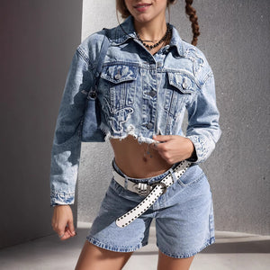 Crafted with durable premium denim, this versatile jacket pairs perfectly with dresses, skirts, leggings, or high-waisted jeans, making it an essential piece for every season.
